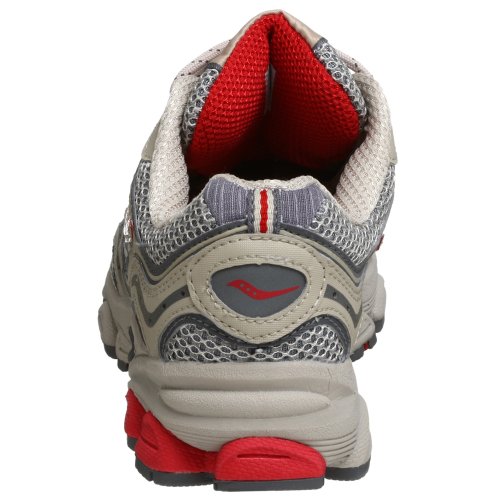 Saucony presents the Grid Excursion TR3, featuring: Off-road cushioning and traction tags; synthetic upper offers rugged durability; molded midfoot support; HRC strobel Board that increases cushioning and step-in comfort; independent crash pad to absorb forces of impact at heel strike; non-Visible Grid® System delivers stable cushioning in the heel area; XT-600 carbon rubber outsole material with an aggressive triangular lug design for increased grip and traction. Style #15014-2. Brown/Gray/Red.